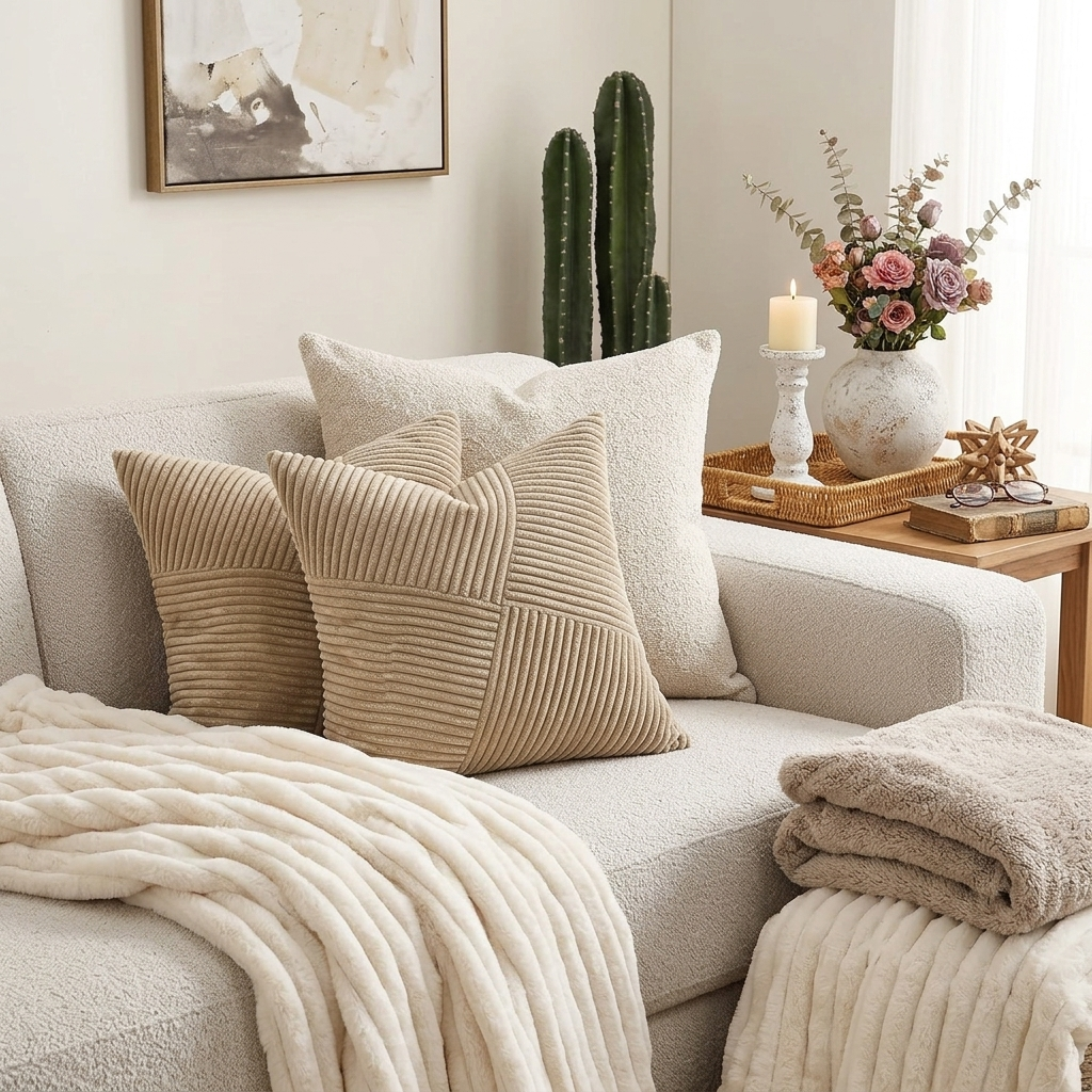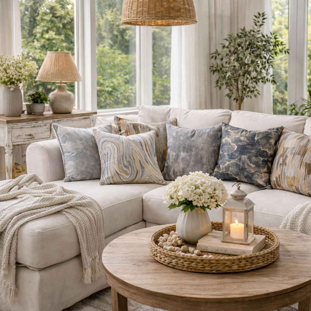 Pillows, throws, and soft layers that make the home feel warmer, quieter, and more lived in.